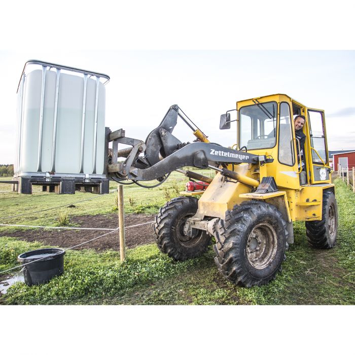 Tanken er fremstillet i kraftig plast med beskyttelsesbur rundt om. Tanken kan nemt løftes af; ladet kan da rumme én europalle som med to lastkroge bliver til en smidig vogn til andre transporter.