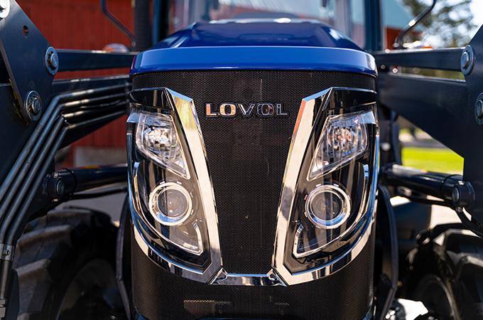 Lovol-traktor med Stage V har god belysning som standard. Lygterne i fronten er indbygget i et strømlinet design med forkromede detaljer.