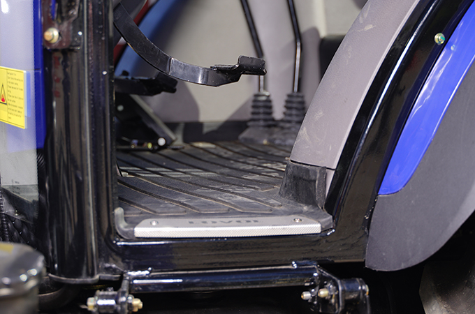 Forskellene i oplevelsen ligger i de små detaljer, og traktoren har ergonomisk placeret indretning, så førerhuset føles rummeligt og bekvemt. Traktoren har plant gulv med isoleret måtte i gummieret overflade og hængende pedaler - for nem ind- og udstigning.